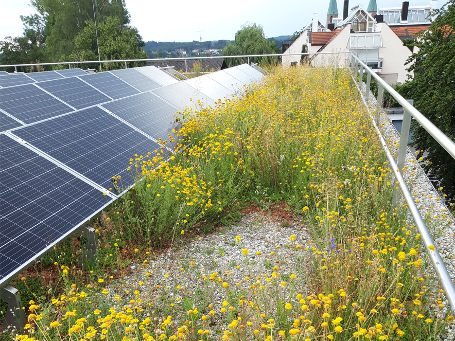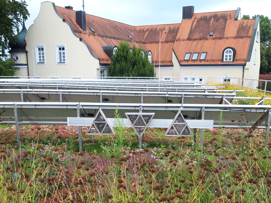Ein besonderer Augenmerk lag auf dem Thema Biodiversität. Neben einer Fassaden- und Dachbegrünung, wurde eine Eingrünung mit überwiegend heimischen Gehölzen sowie Ansaaten mit autochthonem Saatgut vorgenommen.