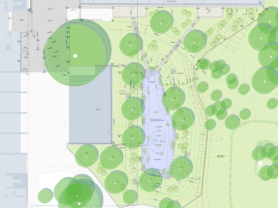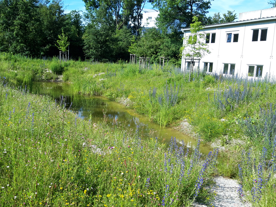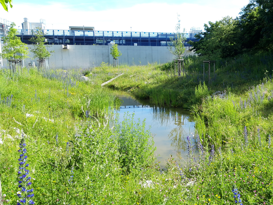 TU München, Neubau Versorgungsstation mit Retentionsteich auf dem Forschungs- und Hochschulcampus Garching