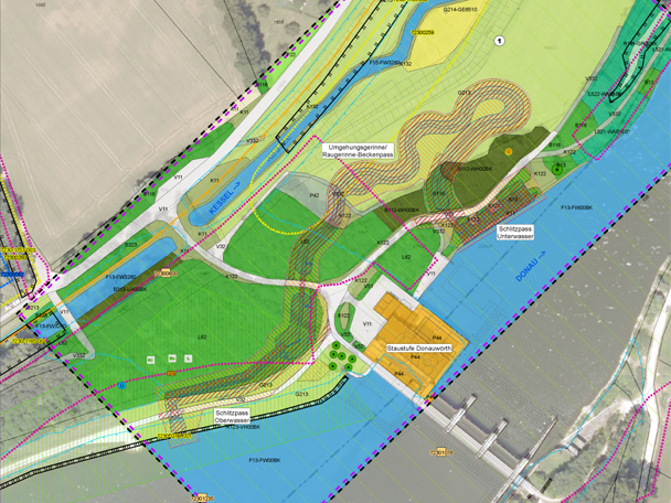 Bau einer Fischaufstiegsanlage. Damit wird die Durchgängigkeit der Donau für die Fischarten des Gewässers gewährleistet und somit i.S.d. Fischpassierbarkeit der Staustufe den Vorgaben der europäischen Wasserrahmen-richtlinie entsprochen. Das Vorhaben dient somit neben der Gewässerdurchgängigkeit der Donau auch der Verbesserung der Gewässerstruktur.