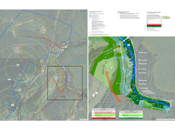 Im Rahmen der FFH-VP war zu prüfen, ob durch die Verlängerung der Entnahmerechte Lebensraumtypen und Arten gemäß den Anhäng-en der FFH-RL bzw. EHZ des Schutzgebietes im Einflussbereich der Trinkwasserentnahme erheb-lich beeinträchtigt werden. Die umgesetzte Renaturierung zweier Quellbereiche vor Ort wurde durch ein fachliches Monitoring begleitet, im Rahmen dessen die Wiederver-nässung mit Verbesserung/ Ent-wicklung von Flächen des LRT 7220* Kalktuffquellen dokumen-tiert wurde.